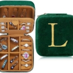 Parima Christmas Gifts for Women – Portable Small Green Initial Travel Jewelry Case Organizer Jewelry Box Travel Accessories Travel Essentials for Women Traveling Female Friends Teen Girls Idea L