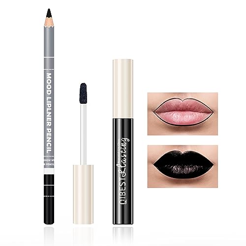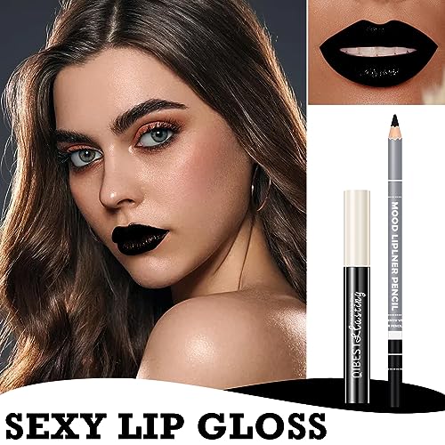 ❤【Lip Gloss and Lip Liner Set in Black】Black matte lipstick lip liner set is highly pigmented and glamorously matte. Its bold, full-bodied, dazzling colors are long-lasting and help you create a matte lip look with a premium feel.
